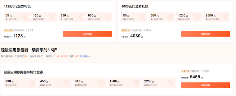 如果我们有需要选购非活动产品的,可以用代金券满减升级或者续费或者新购。