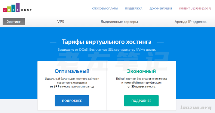 看到JustHost主机商是不是我们有想到早年比较知名的虚拟主机商?这个并不是早年的美国虚拟主机商,而是2006年成立的俄罗斯主机商有提供VPS、独立服务器、虚拟主机等业务。对于这个主机商老左也有关注许久,只不过只提供俄语所以购买起来比较麻烦,我们需要借助浏览器翻译功能。