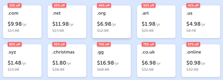 我们可以看到在这次的Namecheap 假日活动中COM域名年付9.98美元,NET 域名11.98美元,NET域名的优惠力度不够大,COM域名还值得的。