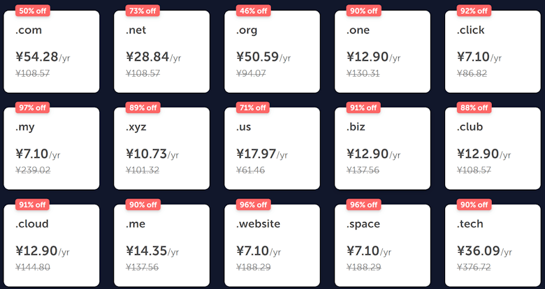 新注册域名包括几十个后缀,可以用到折扣码 BFCMTLD24 ,比如COM域名54元,NET域名28元,力度还是挺大的。