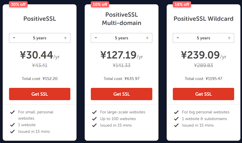 SSL证书的可以用到 BFCMSSL24 折扣码,年付SSL证书低至30元左右。
