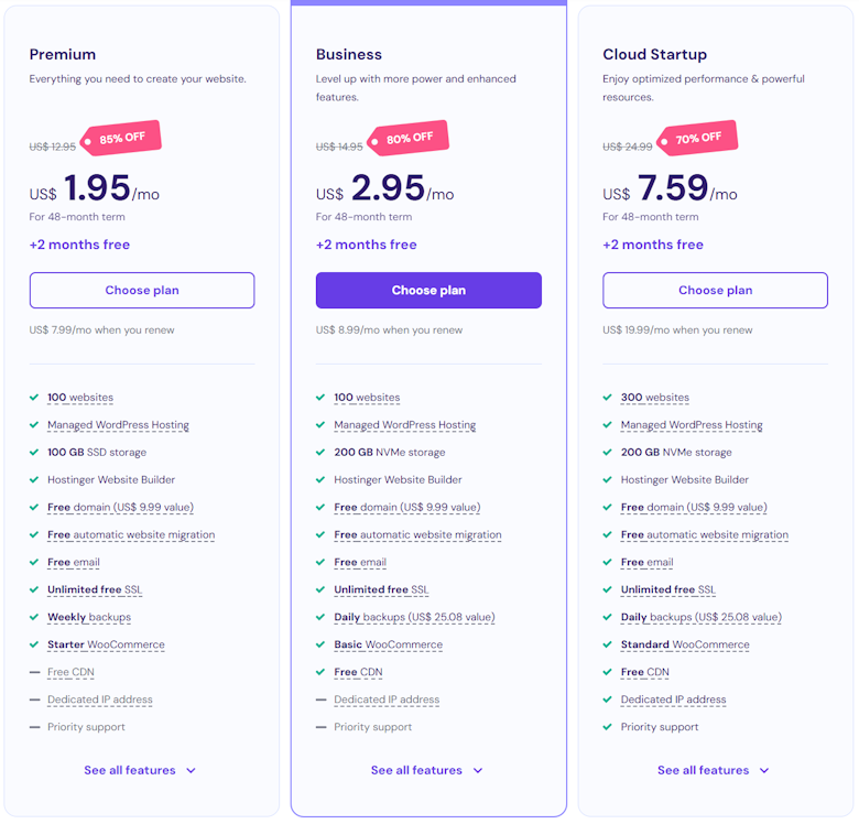 Hostinger主机商我们应该是熟悉的,有超过20年的运营。这次黑五期间,看到商家也有发布活动,有提供全场虚拟主机低至85% OFF优惠活动。虚拟主机低至月费1.95美元,适合有需要外贸网站业务需求。