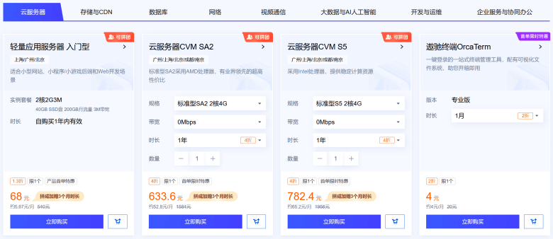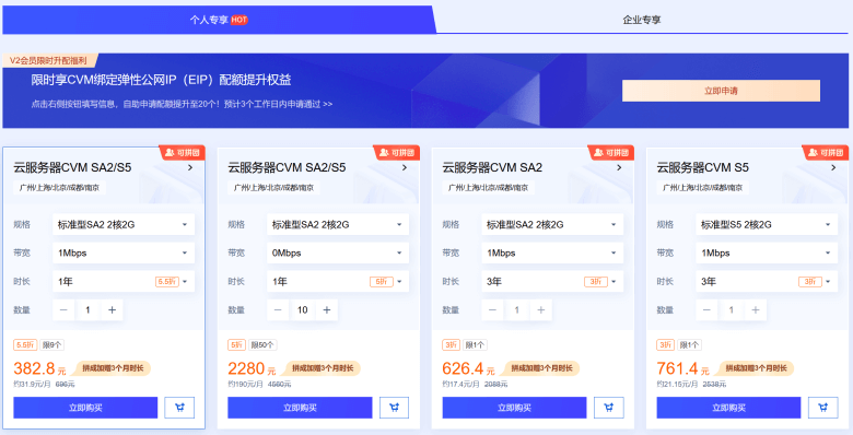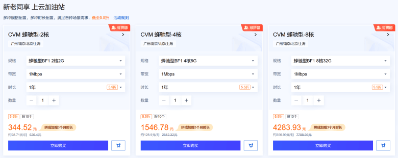 新出品的蜂驰型的云服务器,性能上比传统的CVM服务器更优秀。这里看到也有活动。