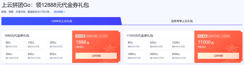 除了促销产品特价产品之外,我们要新购常规产品和续费升级的,可以领取代金券。