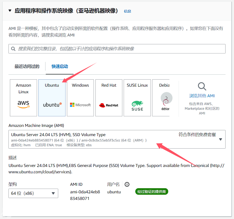 我们在开通亚马逊云账户后,需要创建EC2云服务器。有免费对应的套餐看到对应的镜像,可以免费12个月。