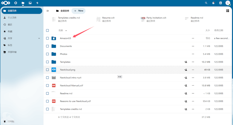 输入我们创建的用户和密码可以看到 NextCloud 网盘的后台,实际上我们现在也可以用,存储的内容在EC2服务器中。这里我们需要将程序和磁盘分离的,我们可以将磁盘单独嵌套外部的S3网盘或者有支持的其他网盘。