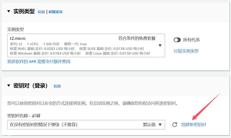 亚马逊云EC2服务器是需要用到密钥登录的。我们需要创建密钥对。