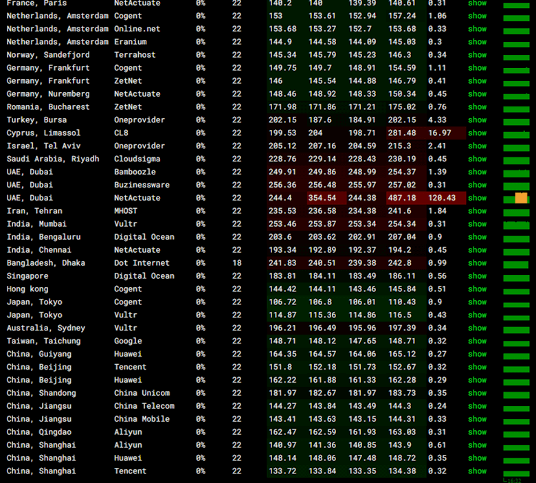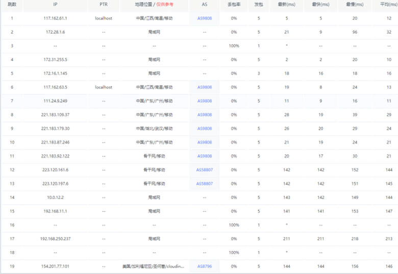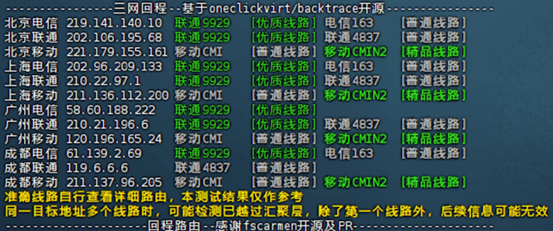 线路回程测试,电信联通均为9929回程,移动cmi直连
