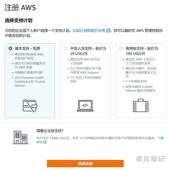 最后我们选择支持计划,选择免费的即可然后完成注册。