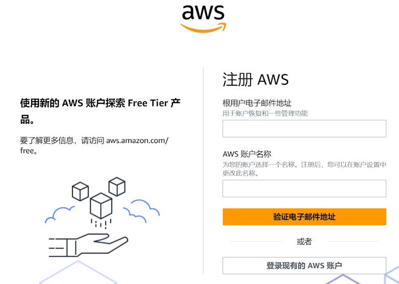 申请地址:这里我们可以直达亚马逊云国际申请地址