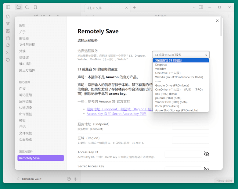 这样,如果我们在用Obsidian笔记的时候可以免费使用一年亚马逊云S3作为内容存储笔记内容,不担心本地系统故障或者是跨平台可以直接同步保存,亚马逊云的稳定性还是不用太质疑的。