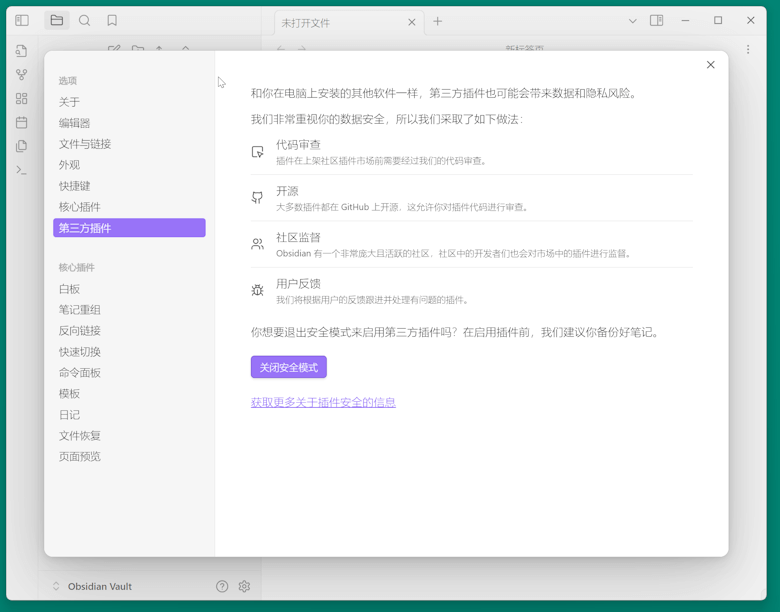 如上图,我们需要去第三方插件菜单中看到关闭安全模式。
