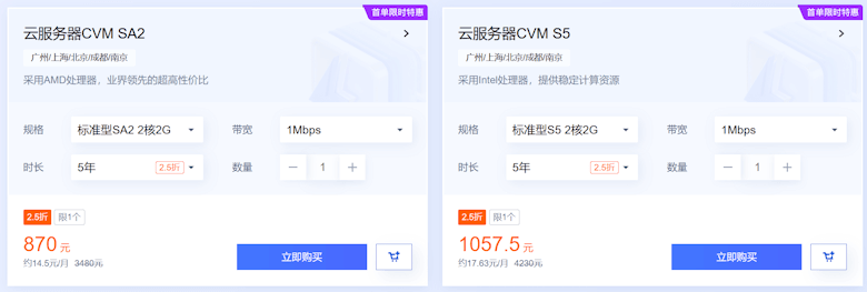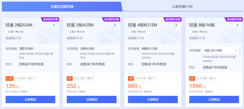 对于云服务器和轻量服务器,有多款产品支持年付赠送三个月,适合有需要一年左右的云服务器产品。