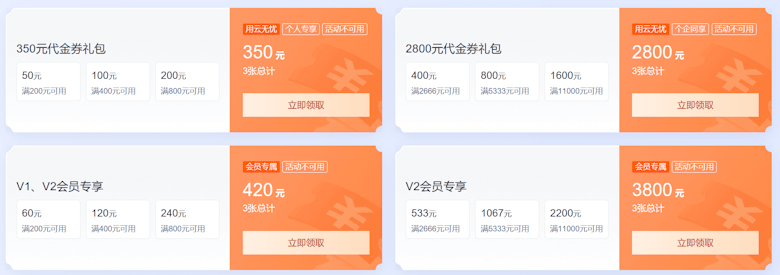 当然,如果有老款产品续费或者升级的,还可以用优惠券满减。