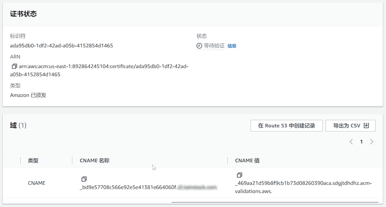 根据提示,我们设置CNAME解析,等待验证自动会成功。