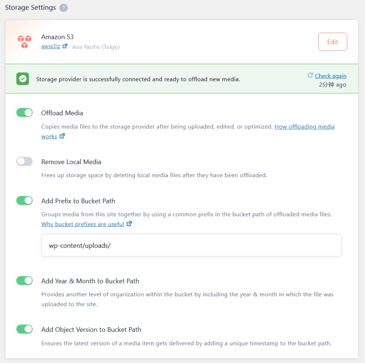 备注:如果我们确实需要绑定自己域名的话,我们建议创建S3云存储的时候,用的桶名称就用自己准备的自定义域名。