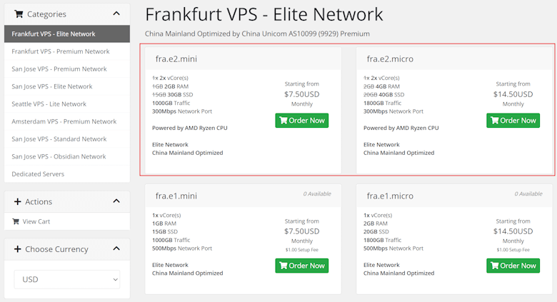 我们可以看到咸鱼主机商还有法兰克福CN2 GIA优化线路、旧金山、荷兰等机房的普通和优化线路产品。