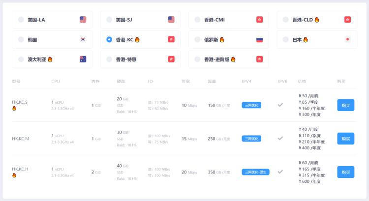 | CPU | 内存 | 硬盘 | 带宽 | 价格 | 购买 |