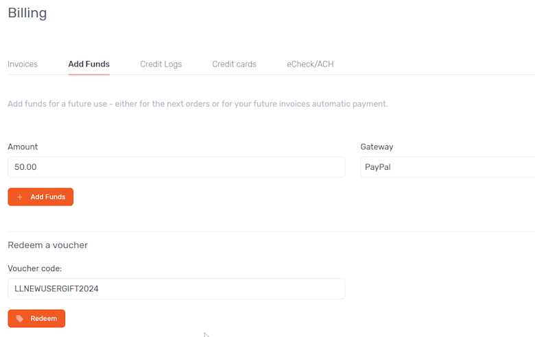 如果我们是新客首次注册 LightLayer 账户,可以领取优惠码激活充值,有赠送20美金余额,但是有限的,所以我们试试是否还有可以领取。