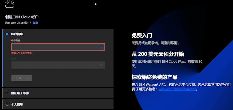 IBM Cloud,我们看到名称就知道来自IBM提供的云服务器产品。对于新客用户注册有赠送200美元的免费体验金,可以有效体验30天内使用。但是新注册账号要求比较严格,需要海外IP地址以及支付方式也需要海外的。如果我们用国内的地址注册应该是不会受理的,以前是可以注册的,由于大量用户注册导致的无法通过。