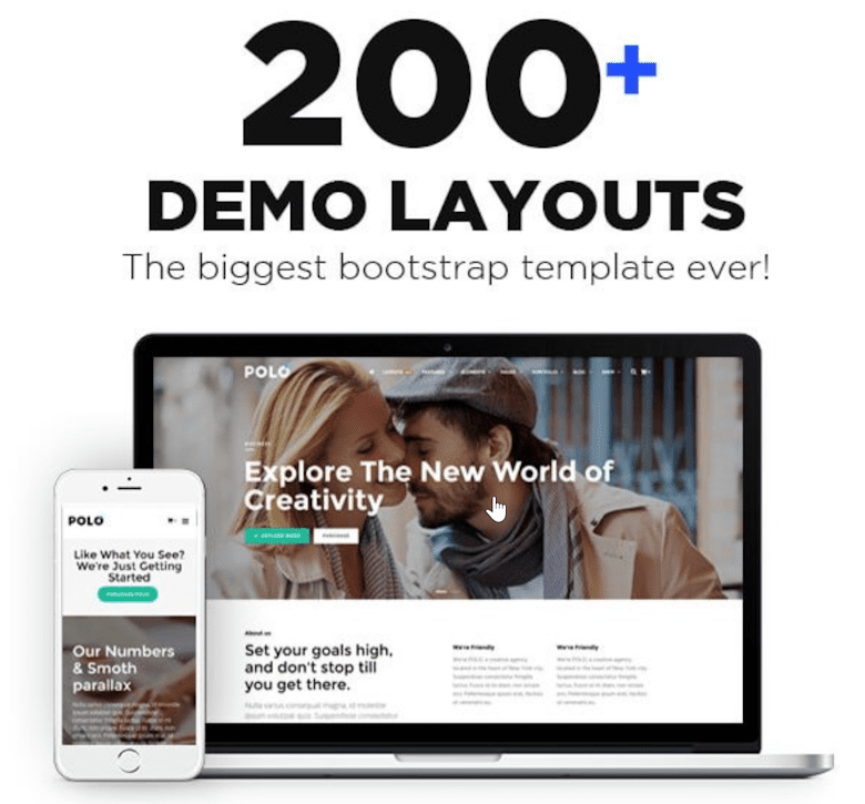 Polo,一个丰富的HTML5模板,可以用于多用途。无论什么类型的业务,它都有无限的可能性来创建令人惊叹的网站。它可以是企业,投资组合,个人,代理,商业,酒店,餐厅,婚礼,商店,博客。有提供打包了超过200+布局演示,600+ HTML文件50+短代码。支持兼容PC,平板电脑,智能手机等。