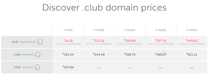 这里我看到Namecheap服务商有.CLUB域名的注册活动,年付14元左右,但是续费需要122元,所以我个人建议不要注册。当然具体还要看我们的前缀是什么,如果确实是有自己的品牌价值的也是可以注册的。