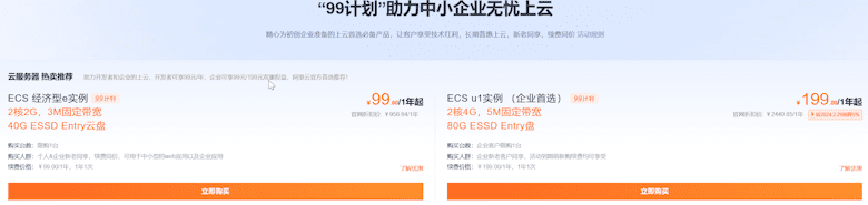 2、2核心4G内存5M带宽配置ECS服务器,不限制流量仅限企业用户。