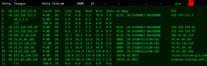 洛杉矶CN2 GIA线路,电信去程GIA(AS4809),联通去程直连AS4837,移动去程香港移动(AS58453),三网GIA回程GIA(AS4809)。