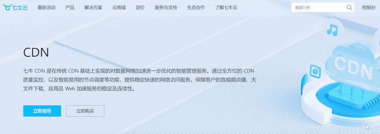 七牛云服务商算是国内比较早提供CDN融合加速服务的。在细分行业中的影响力还是比较大的,只不过后来被国内的大互联网公司进入云市场后风头盖过。目前商家有提供融合阿里云服务器,以及自身的CDN和视频加速服务。对于新客用户有提供每月免费10G的存储和流量。