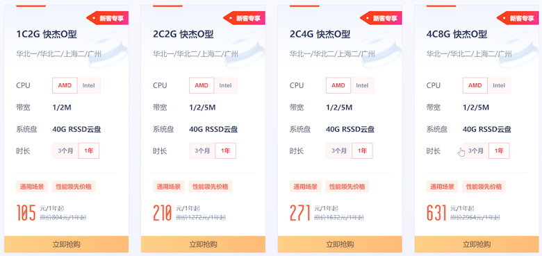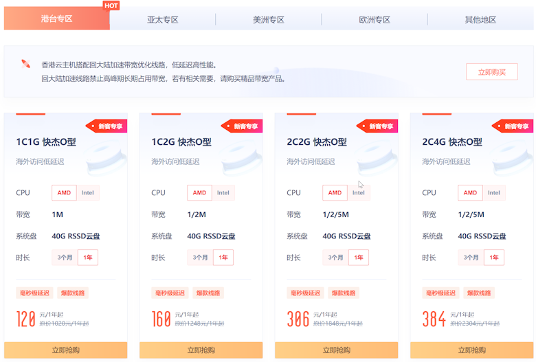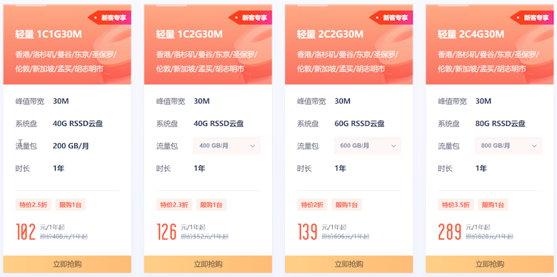 我们可以看到多款香港和亚洲和美洲轻量服务器,最低102元一年。