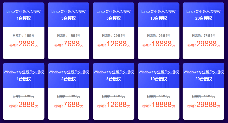 年付专业版授权599元起步,当然还有企业版或者LINUX和WIN不同的版本。