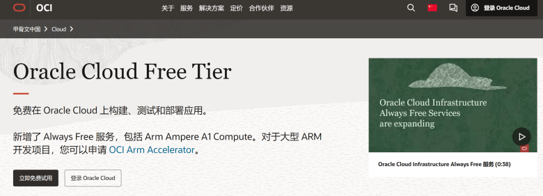 Oracle Cloud(甲骨文)服务商也有提供云服务产品的。包括云服务器、数据库、CDN等产品,对于用户也有开放免费申请资格。比如有提供永久免费的两个 AMD Compute VM服务器、最多 4 个 ARM Ampere A1 Compute 实例,每月有 3000 个 OCPU 小时和 18000 GB 小时、两个 Oracle Autonomous Database,其中包含 Oracle APEX 和 Oracle SQL Developer 等强大工具。以及一定额度的免费体验金。