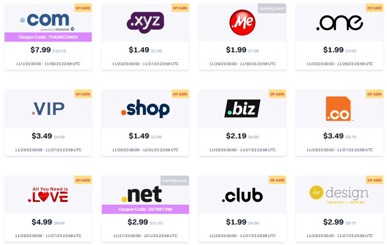 2023年的黑色星期五即将临近,今天是感恩节,但是大部分云服务商都有发布主机的活动。相对域名服务商的活动比较少的。如果不出意外Namecheap服务商明天才会发布活动。今天看到 Dynadot服务商发布新注册和转入域名活动,如果我们有需要新注册域名或者有在其他域名平台续费贵的可以转入进来。