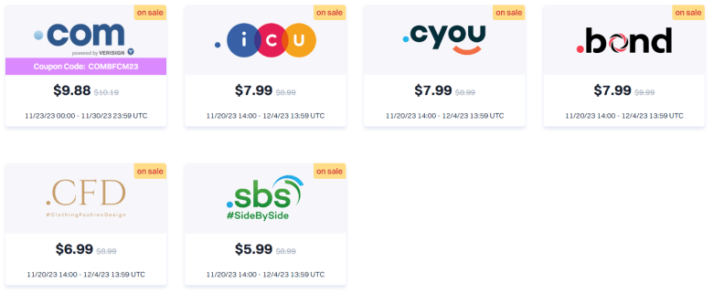 我们可以看到新注册.COM域名7.99美元,包括还有其他的后缀,比如.NET 2.99美元、.ME 1.99美元,需要用到对应的优惠码。