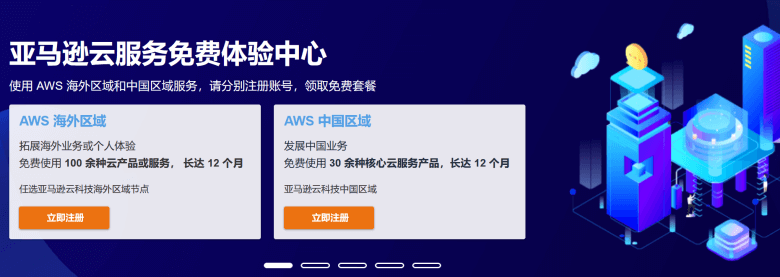 我们可以看到亚马逊云有海外版和国内版本,这里我们就介绍海外国外版本。支持个人和公司主体申请,拥有100+的云产品体验资格,对于云服务器和轻量服务器,有提供最高12个月的体验套餐。当然套餐是有规定的配置的,并不是全部配置支持免费的。