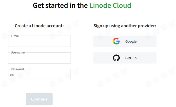 我们可以看到新注册账户目前活动是赠送100美元,有效期是60天,这个我们用过VULTR应该是知道的。我们可以用谷歌账户或者GITHUB直接注册,或者用邮箱注册。