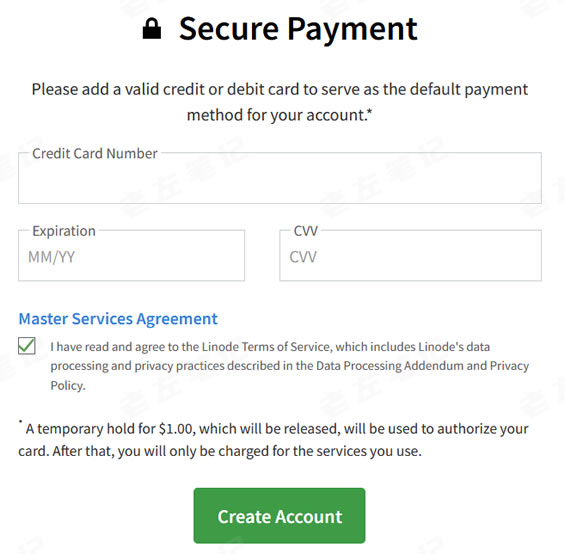 这里我们可以看到只有支持信用卡,信用卡绑定会扣1美元作为验证费用。后面我们使用激活的时候是需要充值的,如果账户有余额直接从账户扣,如果没有余额会直接从信用卡扣费。