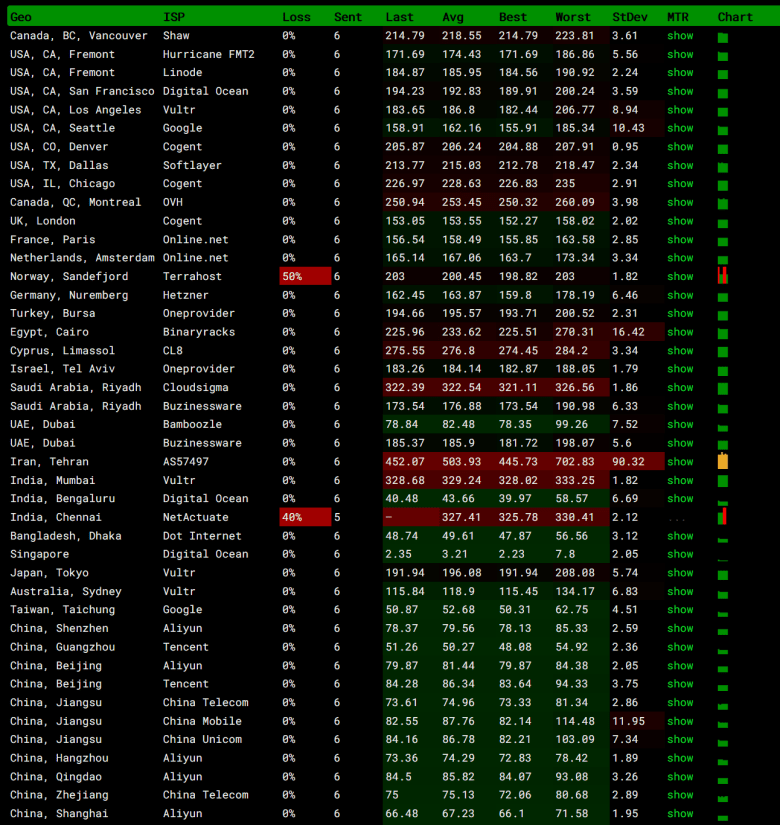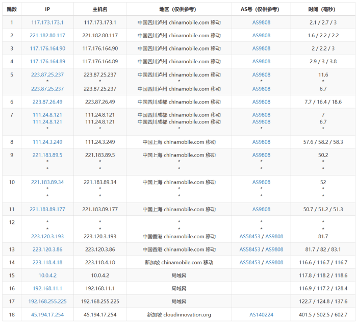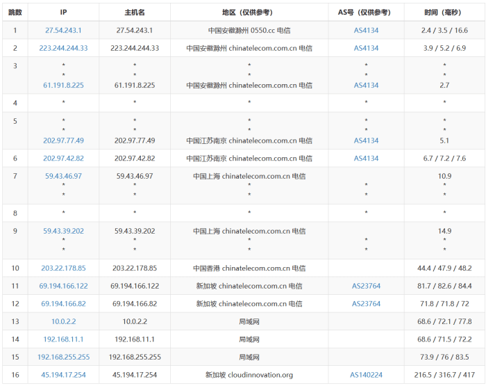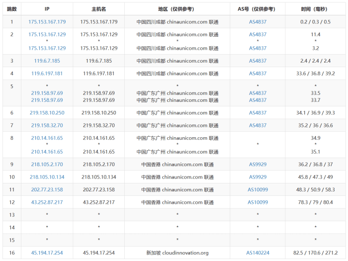 我们可以看看新加坡机房IP在亚洲节点速度稳定性还是可以的。然后我们看看三网去程测速,对于我们国内用户选择速度还是有参考意义的。