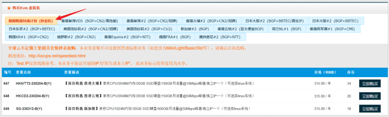 LOCVPS商家算是国内的一个老牌主机商,旗下当然还有多个主机品牌。这次在年中活动期间,发布有三款年付VPS主机,有10M和50M带宽可选的香港和新加坡VPS,Linux系统,优惠后年付252元,如果有需要便宜年付云服务器VPS的可以看看,采用的是KVM架构。