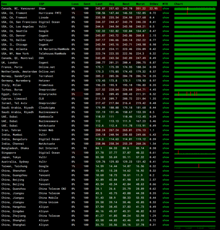 这里根据官方的测试IP先测试看看速度。这是一个新商家,如果要使用,可以选择月付试试。