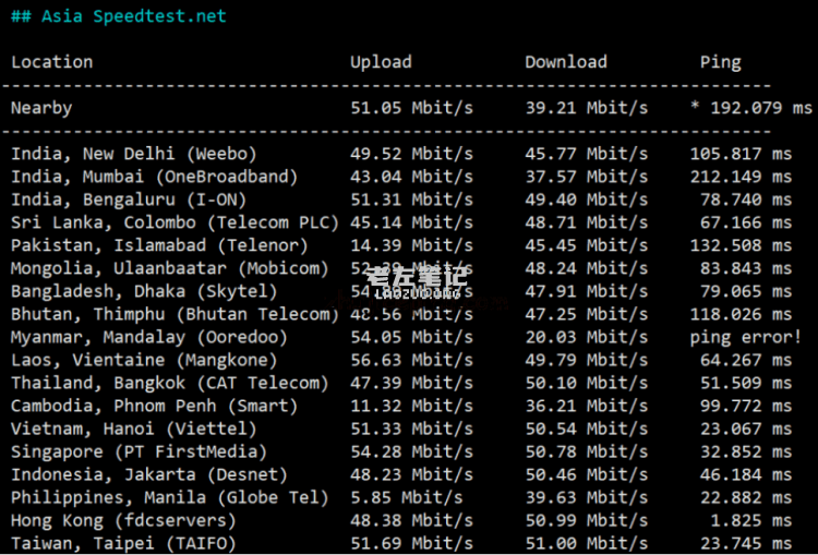 通过第三方工具测试可以看到,东南亚地区的菲律宾、新加坡、东京、马来西亚等节点延迟都非常的低,在50ms左右,像菲律宾、新加坡等节点延迟只有20~30ms左右,所以非常适合开展东南亚地区业务用户使用。