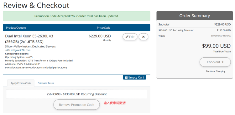 | 圣何塞 | 2*E5-2630L | 256GB | 2*1.6T SSD | 256FOR99 | $99/月 | 链接 |