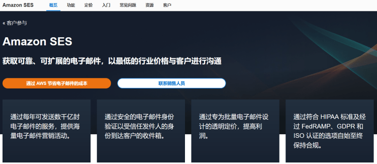 我们在外贸业务中,较多的还是会用到电子邮件营销的,可以利用邮件推送交易电子邮件、营销信息或者产品信息。这里,我们一般都是需要用到第三方电子邮件营销服务的,在亚马逊云中也有提供Amazon Simple Email Service (SES)服务。对于默认账户,我们拥有每月 1000 条入站消息,当我们直接从 Amazon EC2 实例或通过 AWS Elastic Beanstalk 调用 Amazon SES 时,每月可以向任意收件人发送 62000 条消息,SES是一个经济高效的云端电子邮件服务。