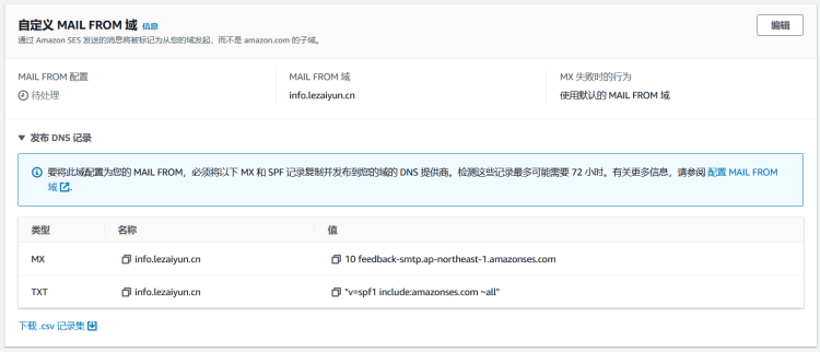 然后根据提示我们还需要增加两个DNS记录。