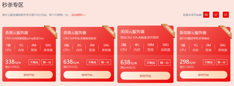 每个账户限购一台特价年付云服务器,比如香港2M年付CN2服务器。