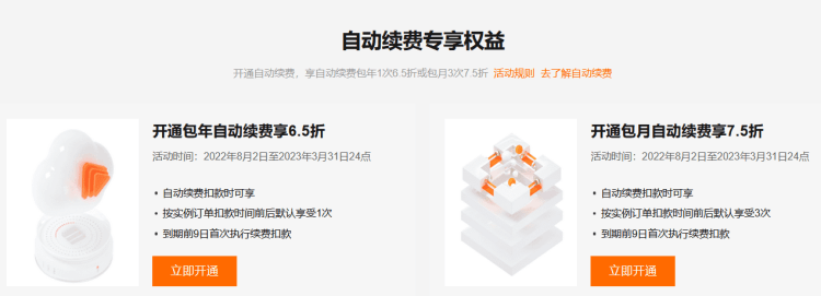 最为折扣的还是自动续费优惠,比如我们这里是年付续费的,直接点击开通,反正开通不开通自己可以提前关闭和续费的。
