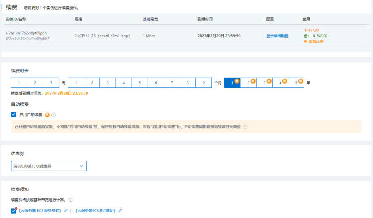 看我这里续费一台2G1M ecs云服务器,可以看到确实比优惠很多。