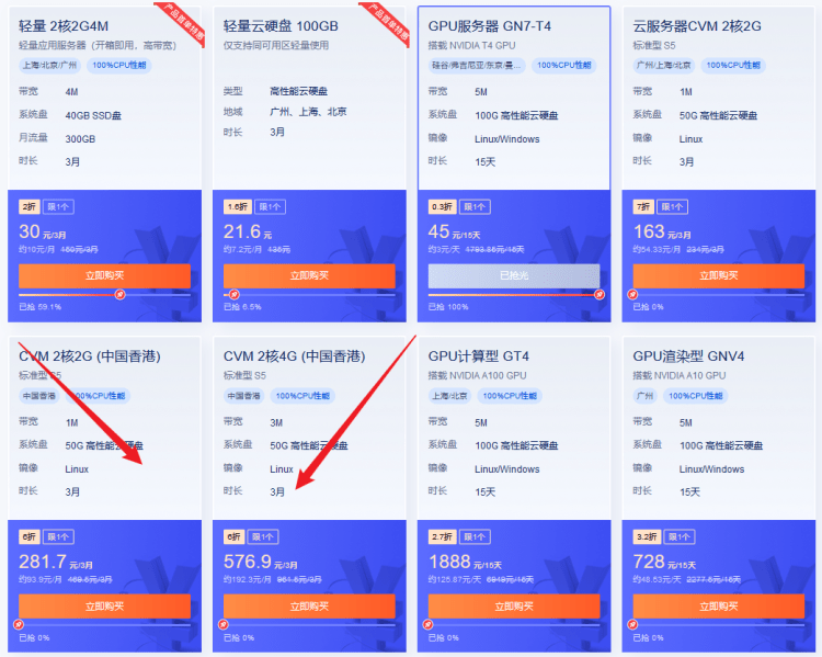 秒杀活动优惠力度不大,而且比较抠门的是只有三个月或者15天的短期产品。当然也有三个月的香港云服务器。如果我们不想非新客资格的话,还是不要买这些短期产品。