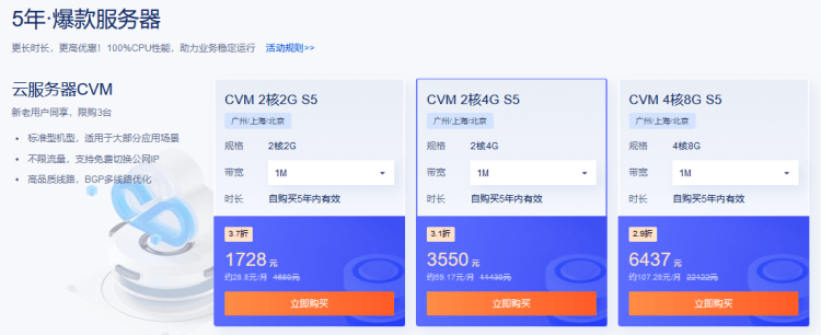五年的云服务器套餐时长以前还没见过,以前最长是三年的。而且不限制新老用户,如果需要长期的云服务器可以看看五年的云服务器方案。