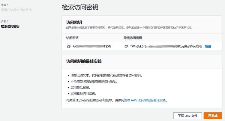 这样存储桶就开通完毕,只要这个存储桶名称。还需要密钥。